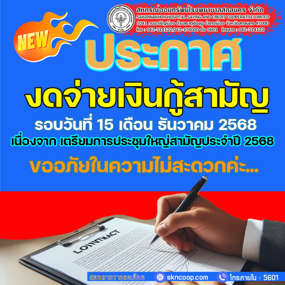 งดจ่ายเงินกู้สามัญ รอบกลางเดือน