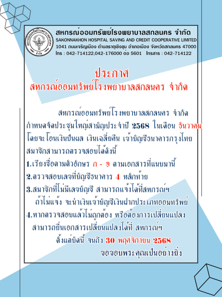 สหกรณ์ออมทรัพย์โรงพยาบาลสกลนคร จำกัด